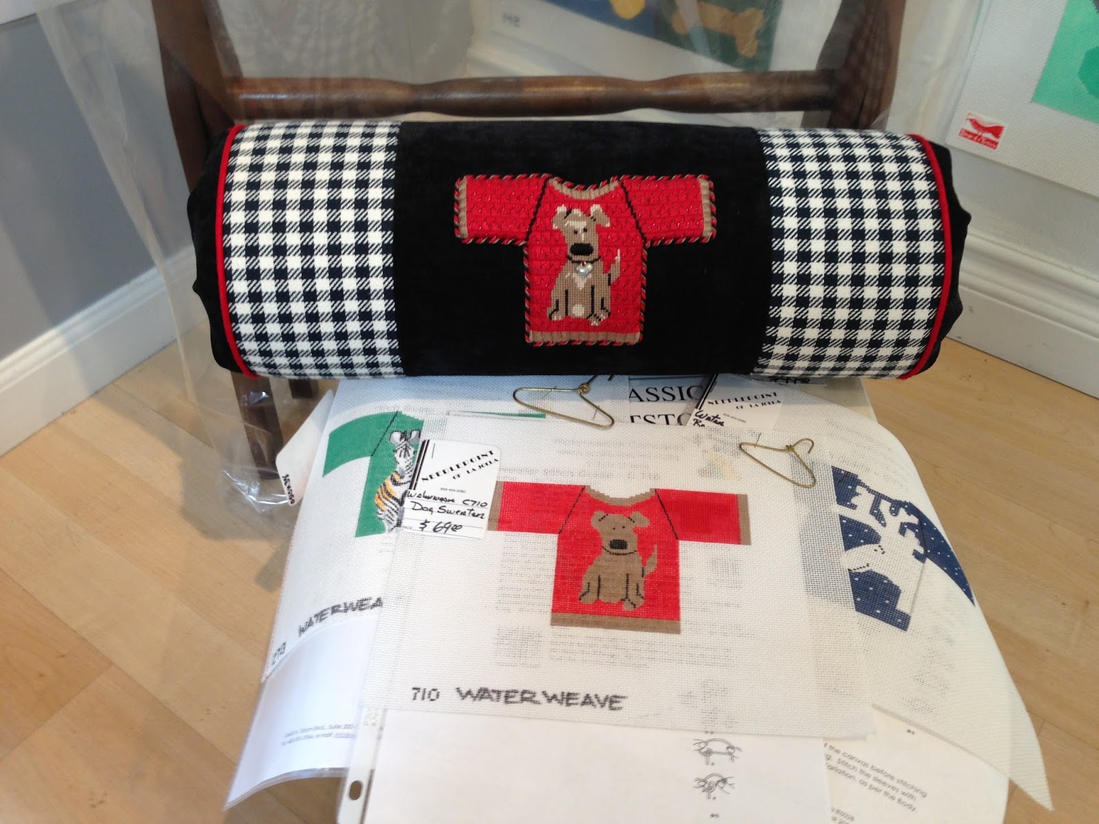 The t-shirt opens at the top for a bone (which was still being finished) to be inserted. Isn't that the cutest idea! Michelle also has one of the best fabric selections I've ever seen at a needlepoint store. She must have close to twenty fabric books filled with gorgeous silks, cottons, etc...